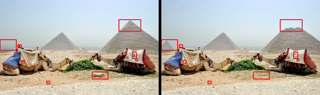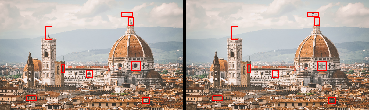 Finally we are calculating the contours and draw rectangles in both images which are corresponding to the differences between the 2 images.
